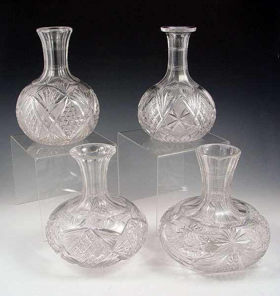 4 AMERICAN BRILLIANT CUT GLASS WATER CARAFES: All are approx 7'' - 71/4'' high. Assorted patterns.