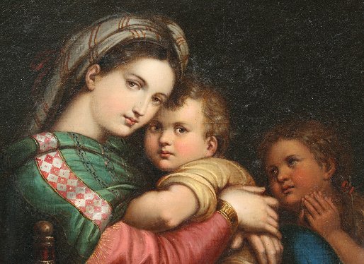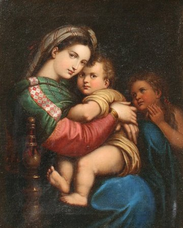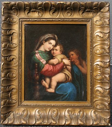 'MADONNA DELLA SEDIA'', AFTER RAPHAEL, ITALIAN SCHOOL 19th C OIL/CANVAS: 18'' x 14 1/2'', pierce carved gilded leaf motif frame with minor wear, 27 1/2'' x 24''. The original is housed at the Palazzo Pitti, Florence Italy. Condition - Needs cleaning. Est. $1500/2500**