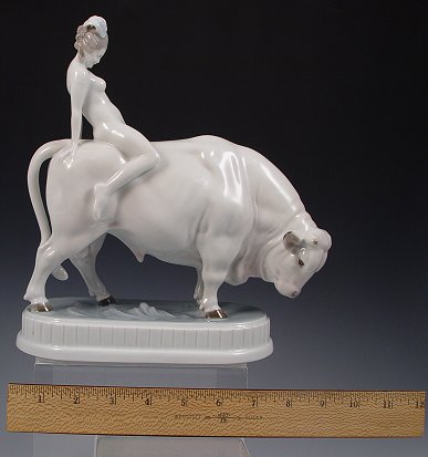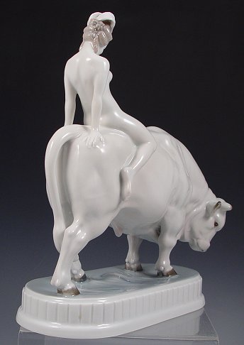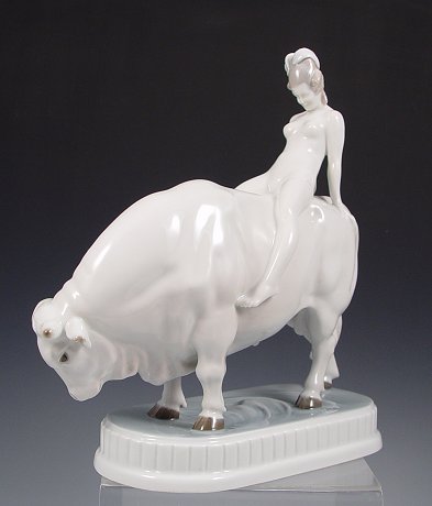 ROSENTHAL ''RAPE OF EUROPA'' PORCELAIN FIGURAL GROUPING: Depicts Zeus as the Bull that tricks the Nude Europa, 9 3/4'' h., x 9'' w., marked underneath.