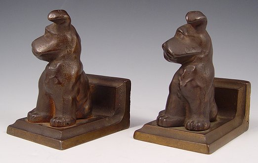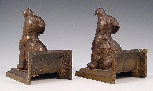 LITTCO BRONZE FIGURAL SCOTTIE DOG BOOKENDS: Paper Littco label remains on one. Measure 5 1/4'' high x 3 3/8'' x 4 1/4''T