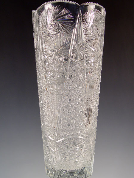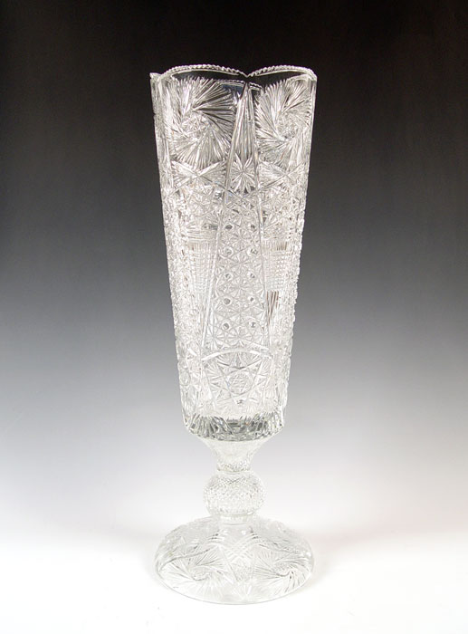 MODERN CONTINENTAL HUGE CUT GLASS VASE: Measures 28 3/4'' high x 10'' base dia.