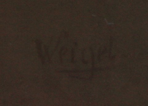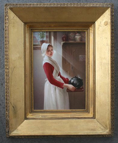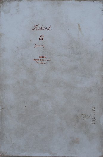 KPM ''FRUHSTUCK'' PAINTING ON PORCELAIN: Signed Weigel, Bailey Banks & Biddle stamp verso, impressed KPM mark, measures 9 1/4'' x 6 3/8'', gilded gesso wood frame measures 15 1/2'' x 12 1/2'', note wear. Est. $2000/4000**