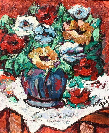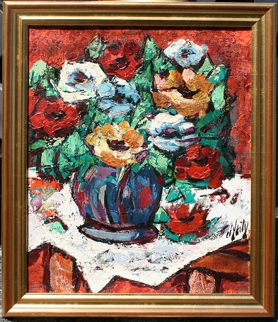 D'ANTY, Henry, (French, 1910-): ''Flores'', Floral Still Life, 20 1/2'' x 18'', signed, signed and titled verso, gilded frame, 25 1/2'' x 22''.