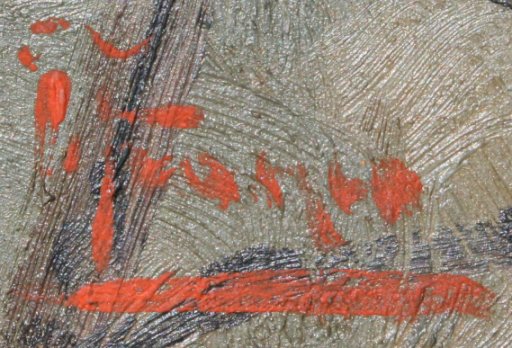 ILLEGIBLY SIGNED ITALIAN? OIL/BOARD OF GRANDMOTHER SPINNING YARN: 11 3/4'' x 9'', gilded and carved gesso frame. Several small areas of cracklure.