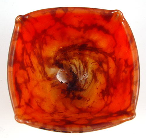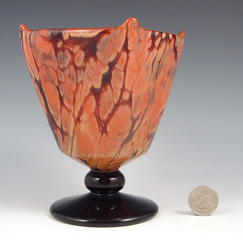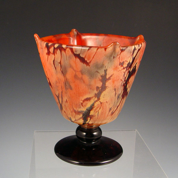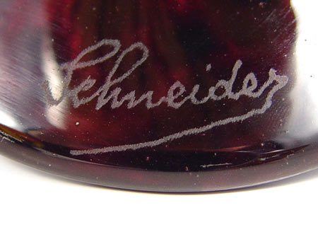SCHNEIDER FRENCH ART DECO GLASS: Mottled glass on amethyst base. Signed ''Schneider'', 5 3/4''h, 4 1/2'' dia. Please note three small minor surface scratches.