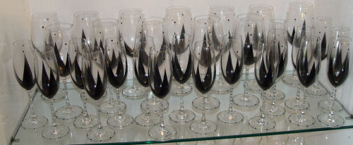 ROSENTHAL BLACK DECORATED DI VINO STEMWARE: 30 pieces to include 18 fluted champagnes (9'') and 12 Bordeaux wines (10'').