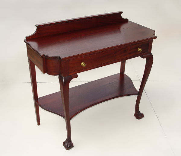 MAHOGANY HALL TABLE CREDENZA: Single drawer. Ball & claw feet on front. Measures 39 1/4'' gih x 44'' x 19 1/2''