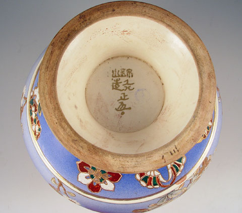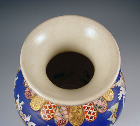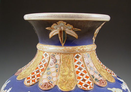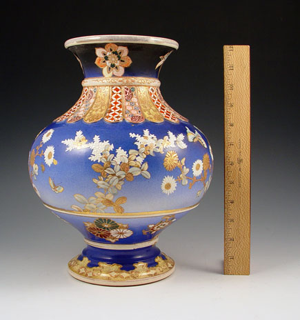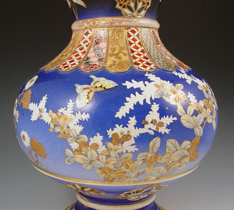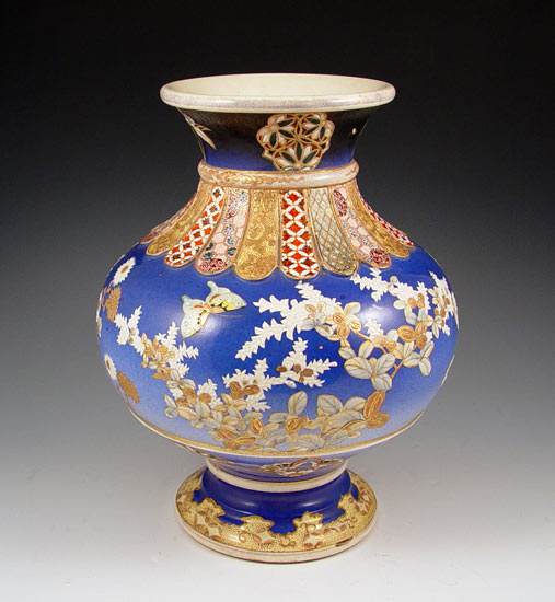 JAPANESE SATSUMA VASE: Kinkozan, blossoms and butterflies, 12'' high.