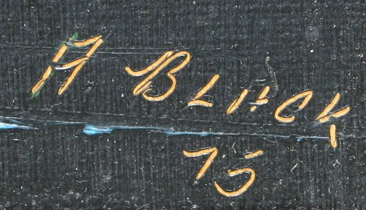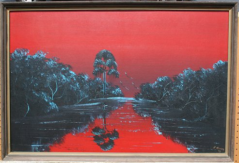 BLACK, Al, (American, 20th C.): Florida Highwaymen Red River Landscape, Oil/Upsom, 24'' x 36'', incised signature, dated '75, wooden frame with wear, 25 1/2'' x 37 1/2''. Abrasions in upper left corner. Est. $600/900**