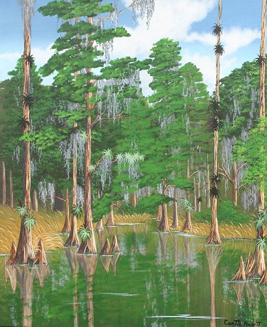 ARNETT, Curtis, (American, 20th C.): Florida Highwaymen Swamp scene, Oil/Canvas, 24'' x 20'', signed, wooden frame, 28 1/2'' x 24 1/2''. Est. $300/500**