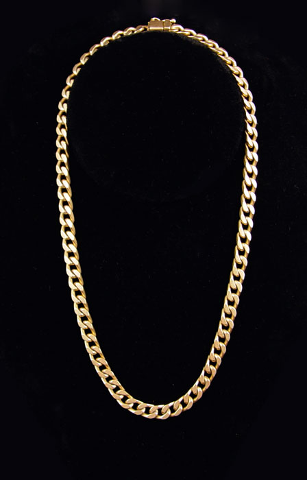 14K GOLD LINK NECKLACE: Pressure clasp with safety, 6.5mm wide links, 18 inch, 71.4 grams.