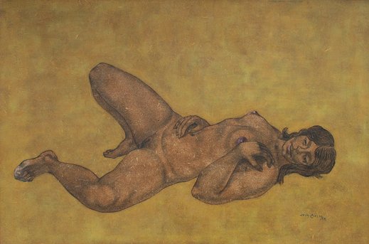 CASTRO, Pedro Leon, (Venezuelan, 20th C): Desnudo, Encaustic on Board, 32'' x 48'', signed and dated 1985, gold frame with wear, 35'' x 52''. Est. $800/1200**