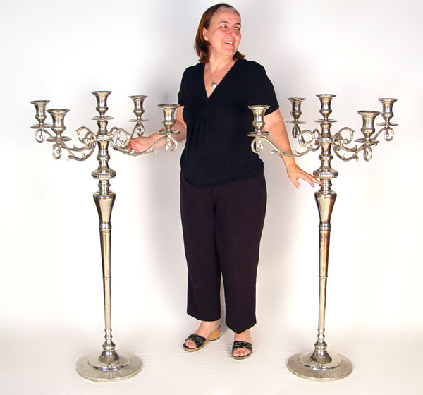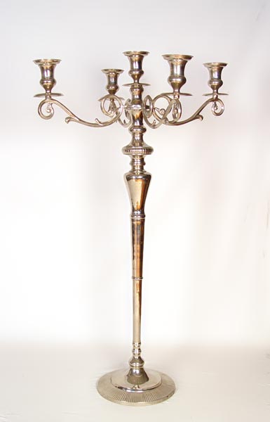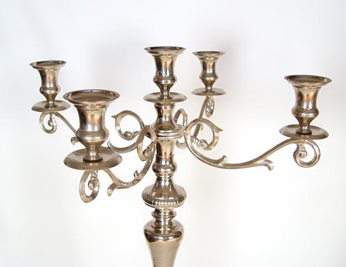PAIR LARGE 5 LIGHT SILVERPLATE CANDELABRA: 5 light converts to single light, measures 49 1/2'' high x 30'' dia.