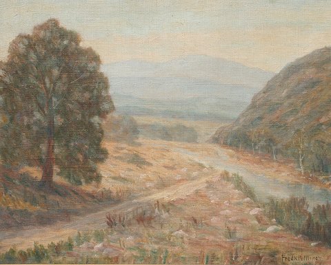 MINER, Frederick, (American, 1876-1935): Western River Valley Landscape, OIL/Canvas, 16'' x 20'', signed, custom period gilded frame 22'' x 25 1/2''. Condition - Needs cleaning.