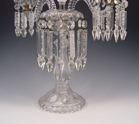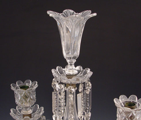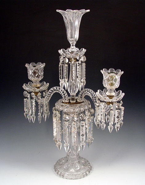 ELEGANT 3 LIGHT CRYSTAL CANDELABRA: Measures 23'' high x 14 1/2'' x 5 1/2''