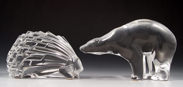 BACCARAT CRYSTAL BEAR & PORCUPINE: To include 1) Bear measures 4'' high x 6 3/4''. 2) Porcupine measures 3'' high x 5 1/8''.