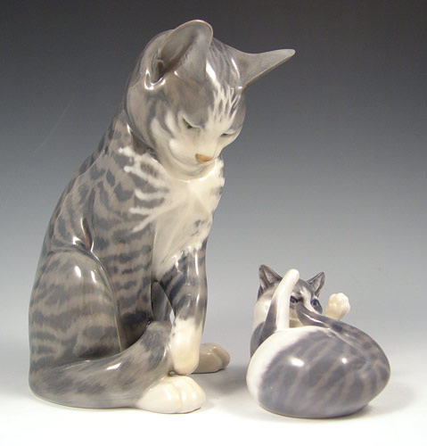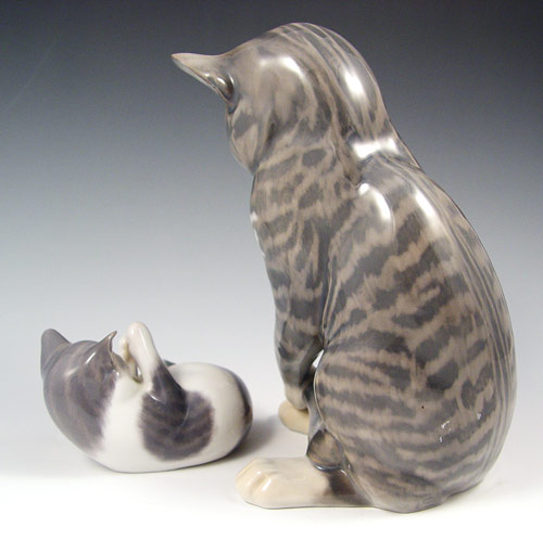 ROYAL COPENHAGEN LARGE CAT 340 & KITTEN 727: Cat 7''