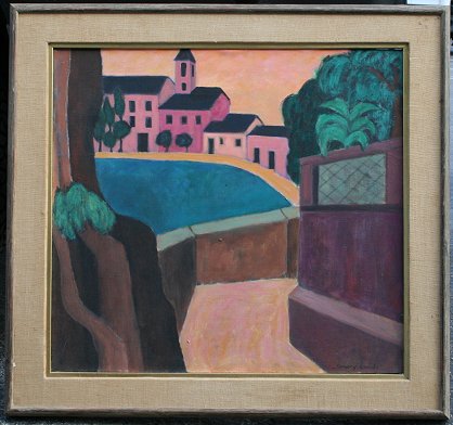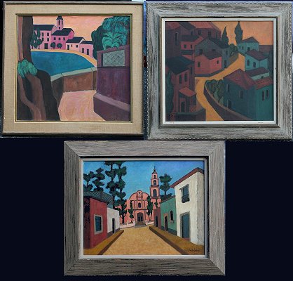 UNDERHILL, Dorothy, (American, 20th C.): 3 piece Oil Painting Lot to include, 1)''Fiesole'', depicts a village at sunset, Oil/Masonite, 17 1/2'' x 19'', signed both lower left and verso, titled verso, custom painted frame, 24 1/2'' x 25 3/4''. 2)''San Miguel de Allende'', Oil/C, 20'' x 26'', signed lower right, signed and titled verso, custom painted wood frame, 28 1/4'' x 34''. 3)''St. Jean Cap Ferrat'', Oil/Canvas, 22'' x 24'', signed lower right, signed and titled verso, encased in a painted wood frame with fabric mat, 29'' x 30''. Sold as a lot. Est. $200/400**