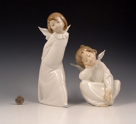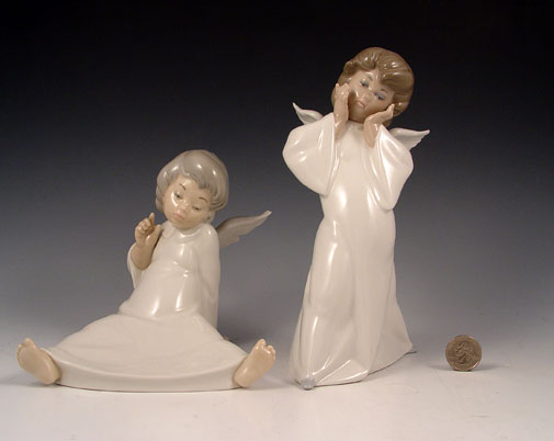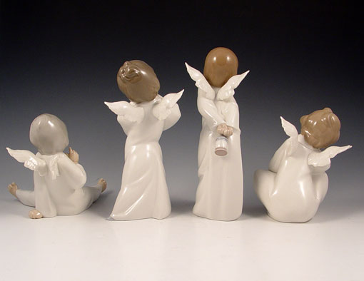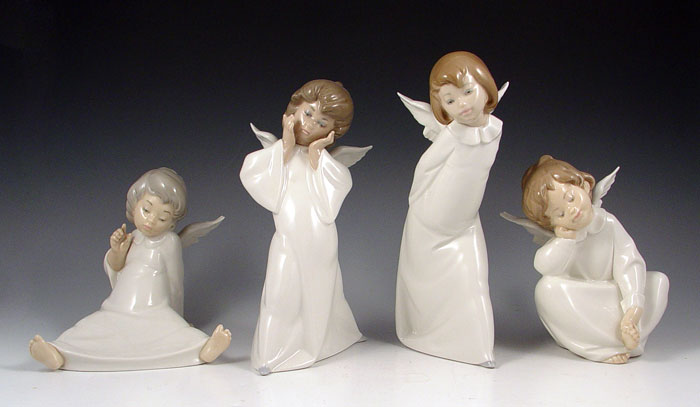 4 LLADRO CHERUB ANGEL FIGURES: To include 1) 4960 Smiling Cherub, 9 3/8'' high. 2) 4959 Puzzled Cherub, 8 1/2'' high. 3) 4961 Dreaming Cherub, 6 1/4'' high. 4) 4962 Wondering Cherub, 5 5/8'' high. No chips or repairs, no boxes.