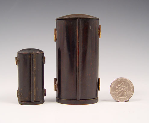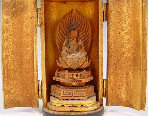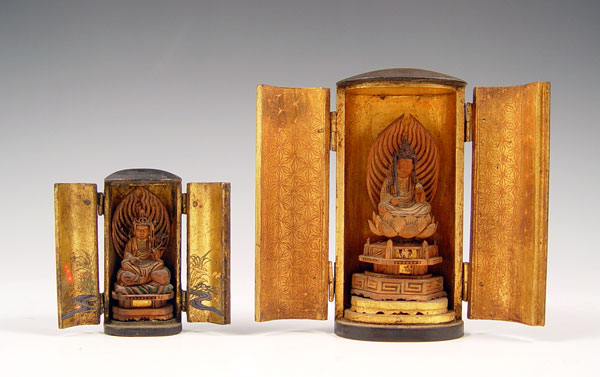 2 MINIATURE SHRINE WITH CARVED BUDDHA: 2'' & 3 1/2''