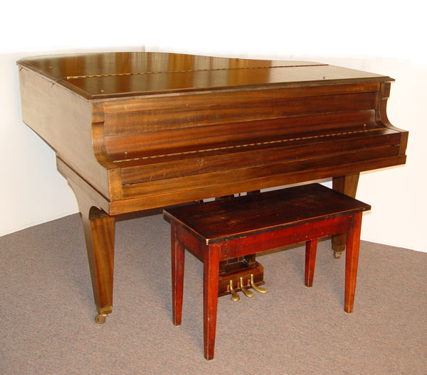 CABLE BABY GRAND PIANO AND BENCH: Measures 38 1/4'' high x 59 1/2'' x 56 1/2''. Stool 20'' high x 30'' x 14''.