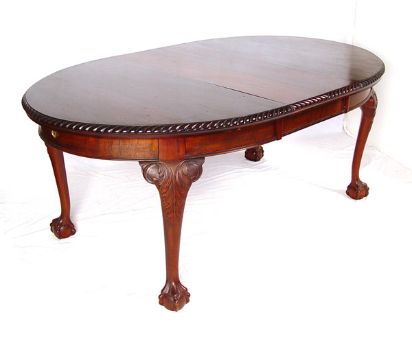 BALL & CLAW FOOT MAHOGANY DINING TABLE: Crank slide table with one leaf. Measures 28 1/4'' h. x 53 1/2'' x 41''. Leaf measures 18 1/4''.