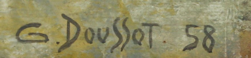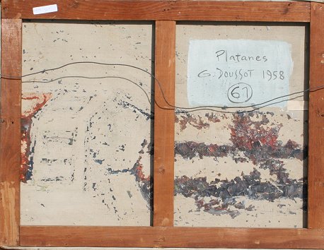 DOUSSOT, Georges, (French, 20th Century): ''Platanes'', OIL/Canvas, 18'' x 24'', signed and dated 58 lower right, titled signed and dated 1958 verso, barn wood style frame 25'' x 31''.