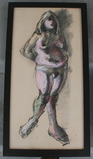 RAMPOLLA, Frank, (American, 20th C): Standing Nude, Pastel, 28 1/2'' x 14 1/2'' sight size, signed, dated 69, encased in painted black frame, 31'' x 17''.