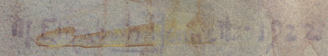 CONDITION: Several areas of moisture damage with spotting, most visible lower left and right corners.