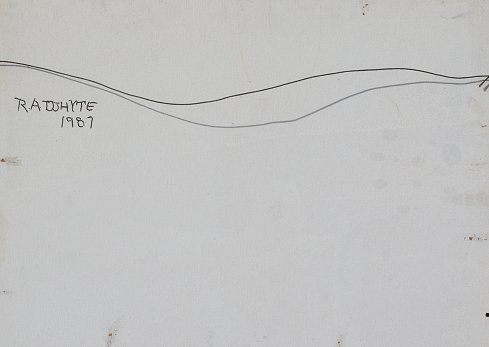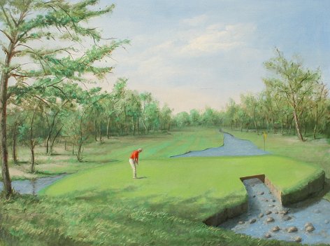 WHYTE, Raymond, (American, 1923-2002): Surreal Golf scene, OIL/Masonite, 18 1/2'' x 25'', signed verso, dated 1987, wooden frame, 26'' x 32''.
