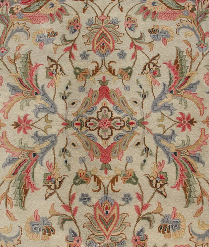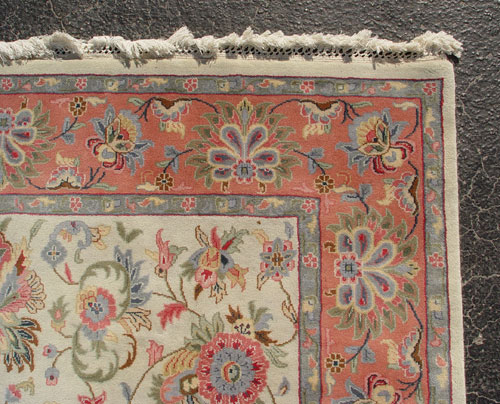 CONTEMPORARY FLORAL CARPET: Approx. 9' 5'' x 5' 11'', pinks and cream.