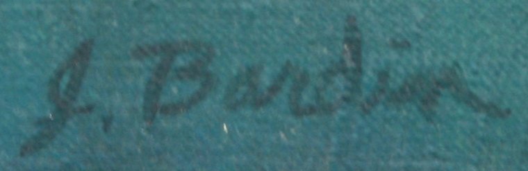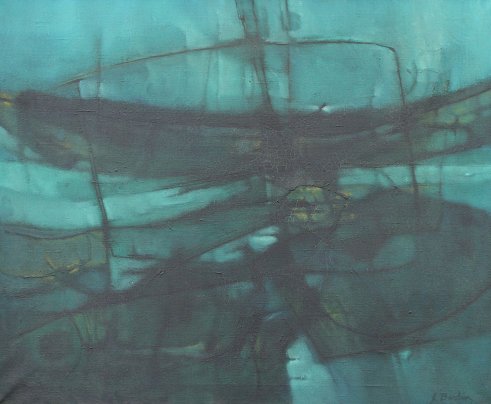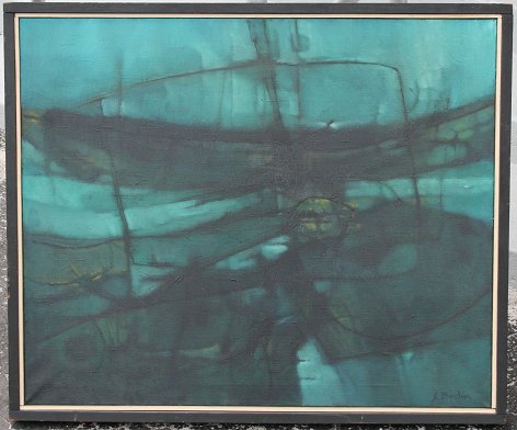 BARDIN, Jesse, (American, 1923-): Mountain Stream, OIL/C, 28'' x 34'', signed, encased in painted black frame with wear, 30 1/4'' x 36''.
