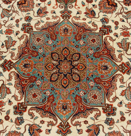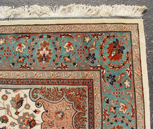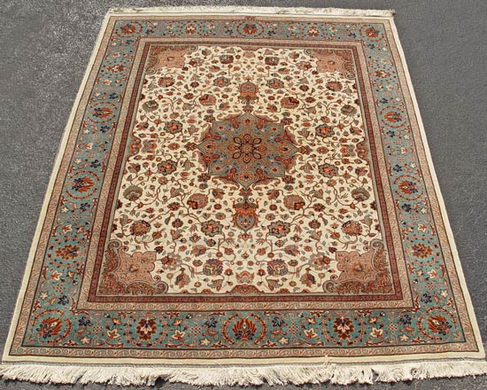 HAND TIED ESTATE ORIENTAL / PERSIAN CARPET: Approx. 10' 5'' x 8', light blue with center medallion.