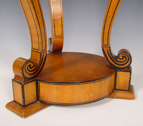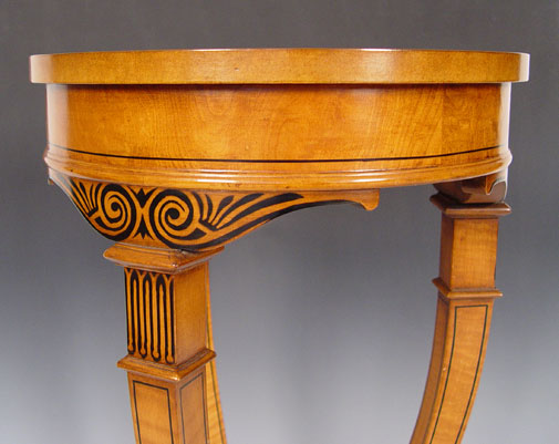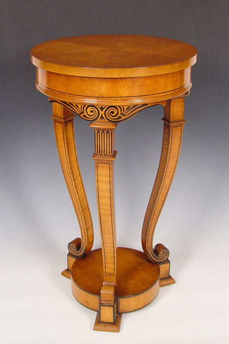 HIGH STYLE NEO CLASSICAL STYLE SIDE TABLE: The graceful lines of the table are outlined in black. 28'' high x 16'' dia.