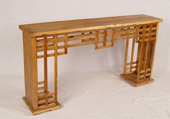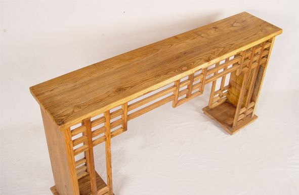 CHINESE ELMWOOD ALTER TABLE: Wood with a beautiful patina and grain. Measures 34 3/4'' high x 67 1/2'' x 14''