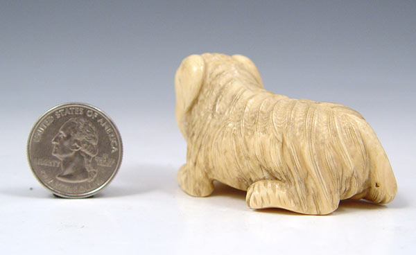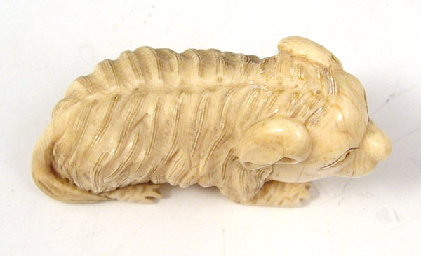 CHINESE CARVED IVORY FOO DOG: Unsigned. Measures 1 1/2'' h. x 2 3/4''