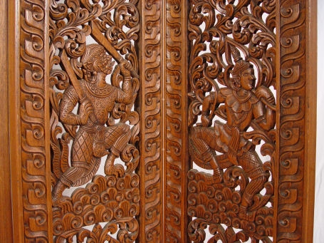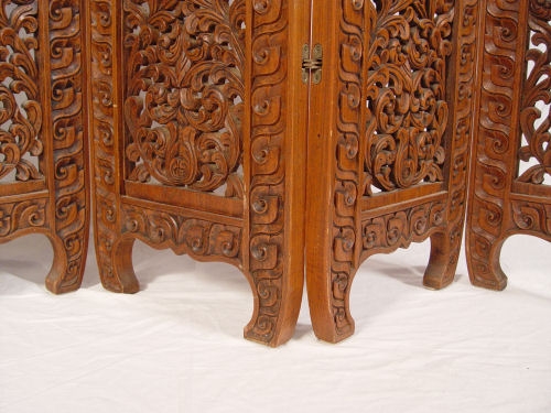 ELABORATELY CARVED 5 PANEL FLOOR SCREEN- PHILIPPINES: Heavily carved and pierced. Each panel measures 70 1/2'' high x 15''. Expands to 75'' long.