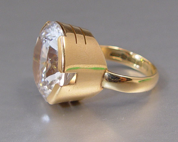 ANTIQUE SWEDISH 14K ROUND 10CT QUARTZ RING: Stamped with Swedish hallmarks dating the ring to 1915, stamped 585. 14K yellow gold ring featuring a very large round mixed cut white quartz. approx. 10 ct. Prong set. Size 8.5. Weight 10.8 grams.