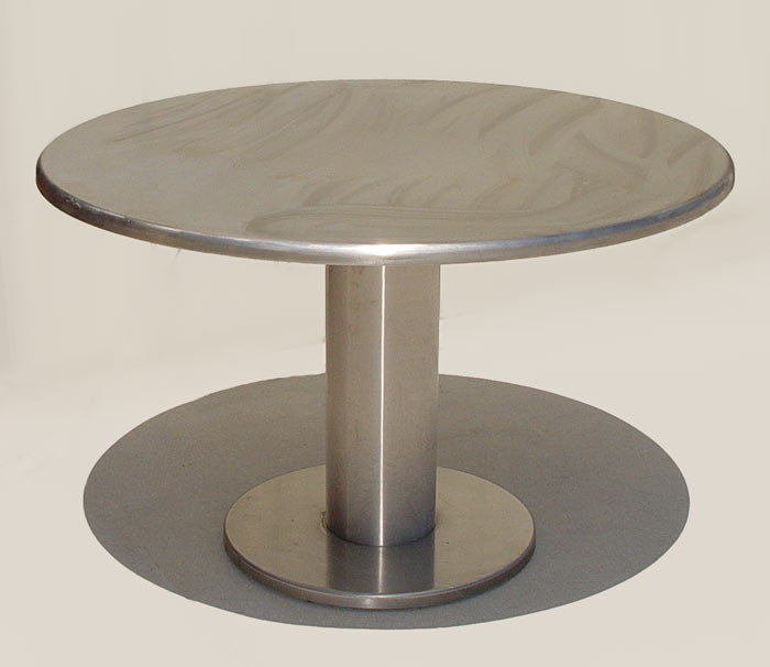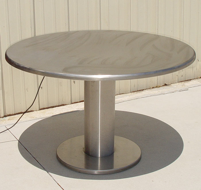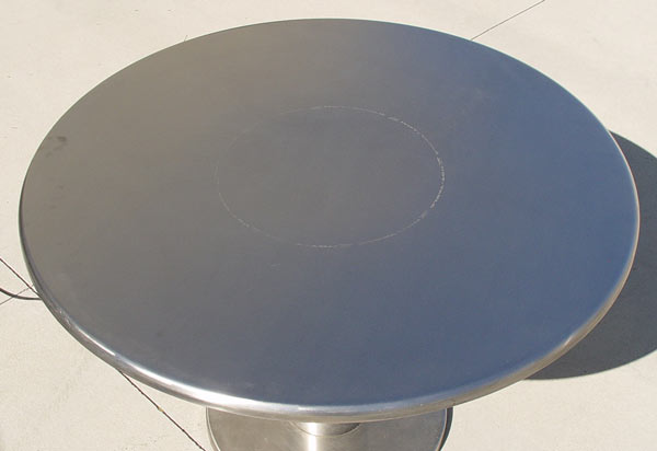 CDS TEPPANYAKI STAINLESS STEEL GRILL HOT TABLE: A new way to entertain with electric flameless heat. The center of the table turns into a shallow pit, when off the surface converts back to a flat table. 47'' diameter, 30'' tall, 23'' base.