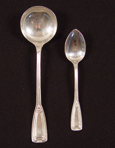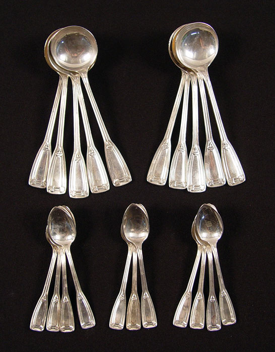 21 PIECE TIFFANY STERLING ST. DUNSTAN SPOONS: To include 11 demitasse spoons (4 1/8''), 10 bouillon spoons (5 3/8''). No monograms. Approx 16.5 troy oz.