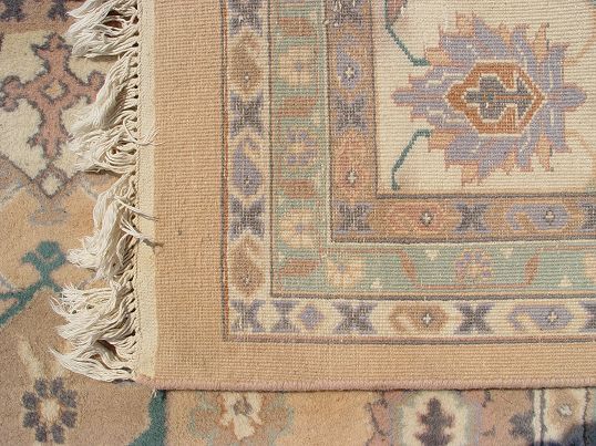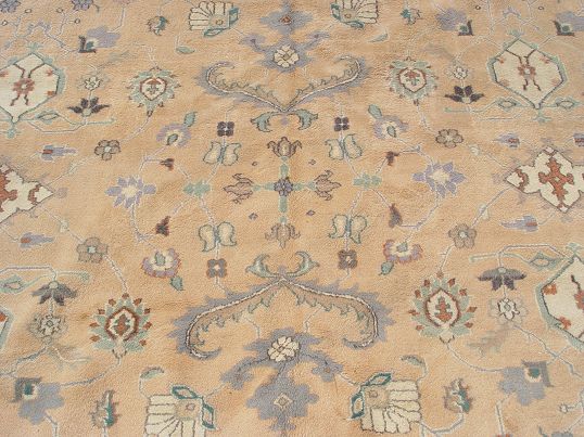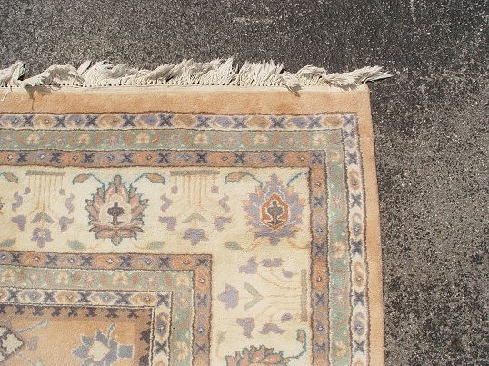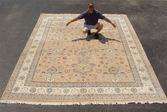 LARGE INDO PERSIAN CARPET: 14' 10 1/2'' X 11' 7 1/2'': Recently cleaned, still shows some stains.