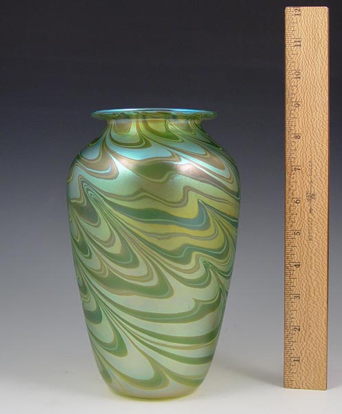 DURAND IRIDESCENT ART GLASS VASE: Pulled design, 8 5/8'', unsigned.