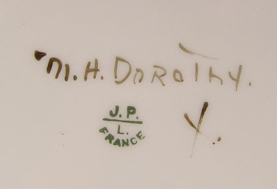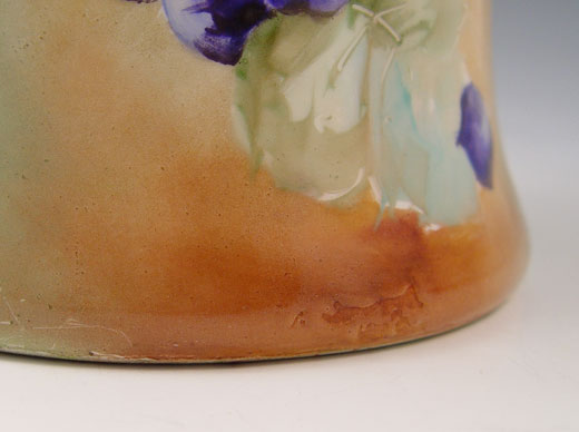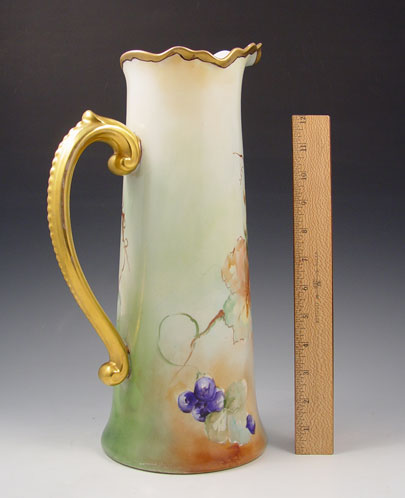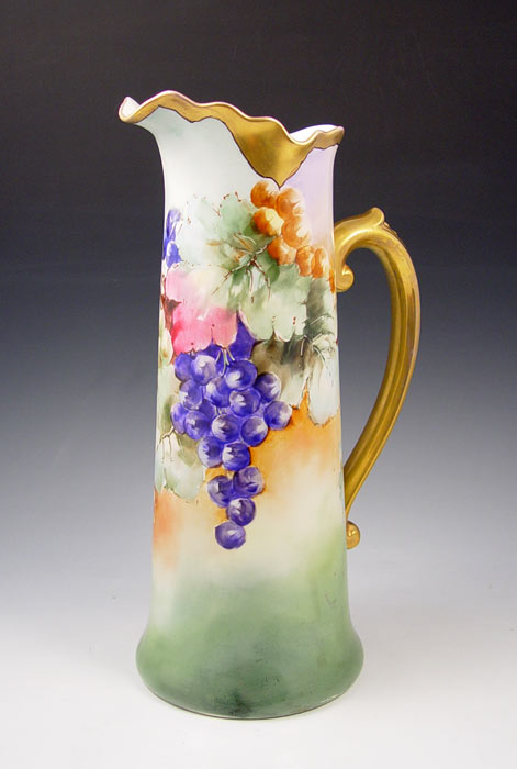 FRENCH LIMOGES HAND PAINTED TANKARD: Ca. 1891-1932, Jean Pouyat. Grape decorated, 15'' high.