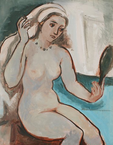LYNN, Nancy, (American, 20th C): Nude with mirror, Oil/Board, unsigned, 30'' x 24''. Lynn studied art in Philadelphia, was an instructor at University of Tampa and Berkley and exhibited at The Peachtree Gallery in Atlanta.
