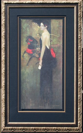 MAS, Felix, (Spanish, 20th C.): ''Black Dress'', Serigraph, 36 1/2'' x 18 1/4'', signed, numbered 15/350, encased in elaborate contemporary gilded gesso molding, 64'' x 35''.