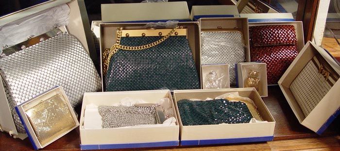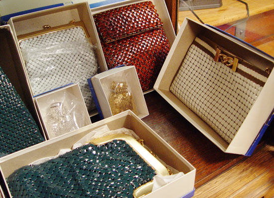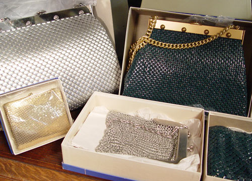 10 WHITING & DAVIS MESH PURSES: An estate find of 10 purses in their boxes, most have never been used. From the expandable evening purses to the large handbags.