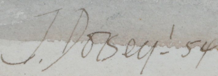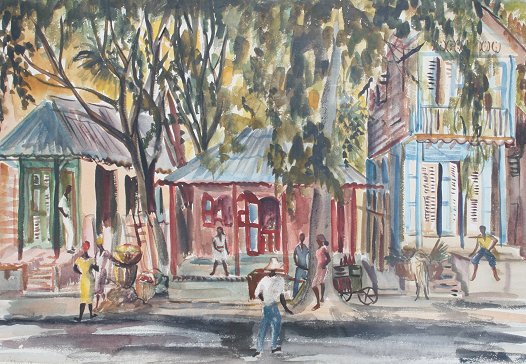 DORSEY, J., (American, 20th C.): Jamaican Street Scene with Figures, Watercolor, 15 1/4'' x 21 1/2'' sight size, signed & dated '54, frame has wear, 26'' x 31 3/4''.