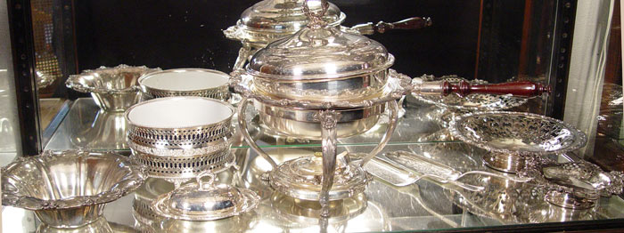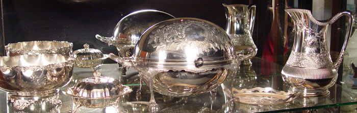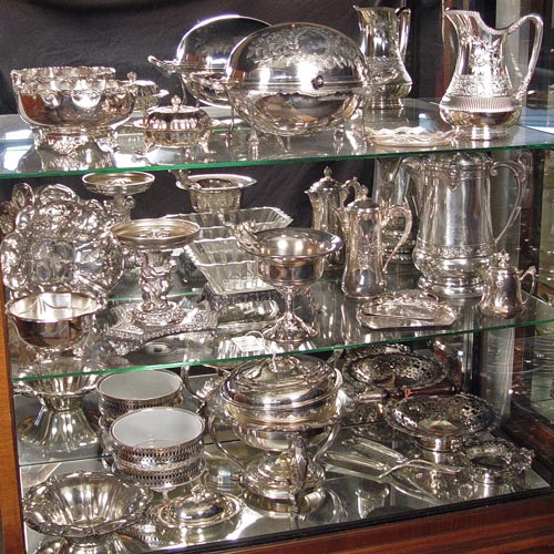MASSIVE COLLECTION OF SILVERPLATE SERVING PIECES: Approx 22 pieces. Highlights include Squirrel nut bowl, cold water pitcher, breakfast server, cherub center bowl base, presented pitcher, large covered center bowl, other bowls and crumbers.