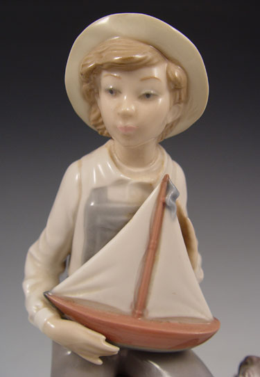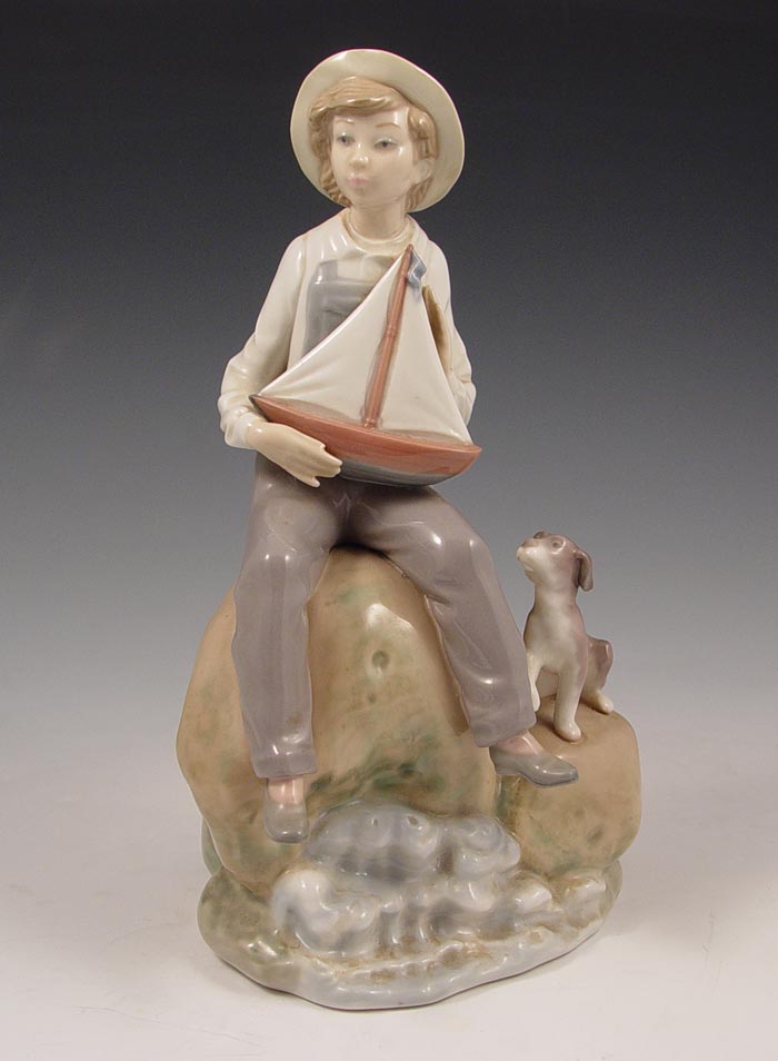 LLADRO PORCELAIN SEA FEVER BOY WITH TOY SAILBOAT 5166: Retired in 1993, 9''h.