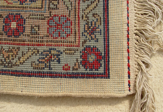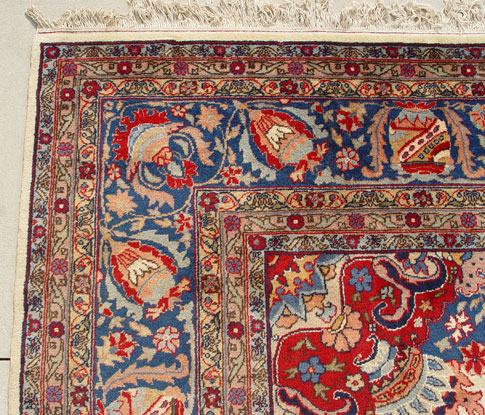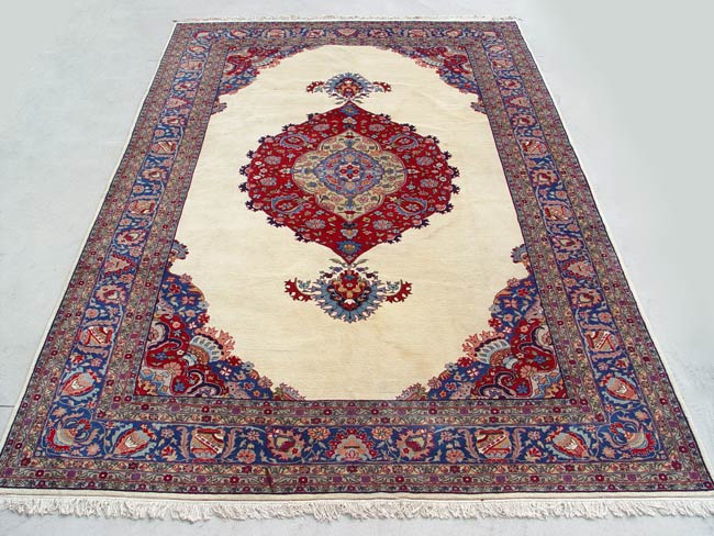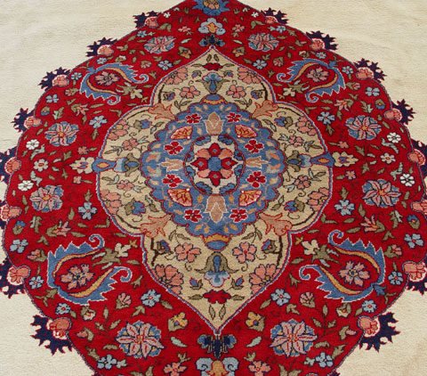 17 FT HAND TIED ORIENTAL CARPET: Approx. 17' 9'' x 11'. Central medallion on cream ground.
